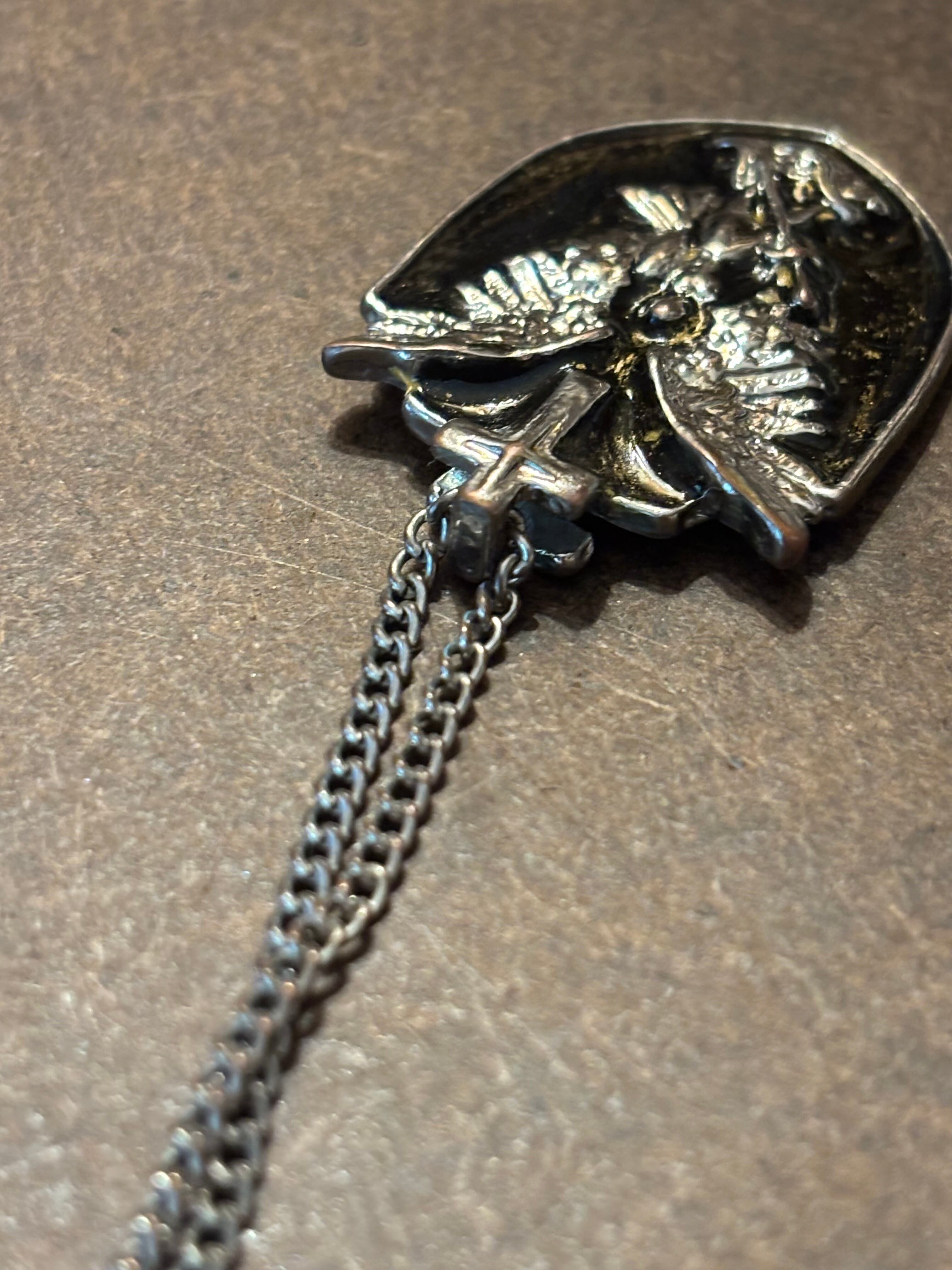 大きな翼と十字架がひときわ印象的で、ネックレス全体からそのパワフルさと魅力が溢れ出しています。